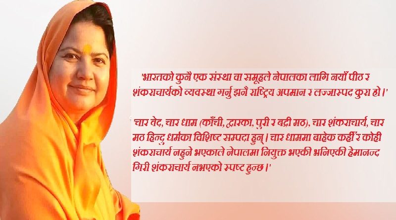 हेमानन्द नेपाली चेली भएकीले उनी ज्योतिष्पीठको शंकराचार्य बन्न नसके पनि पशुपतिपीठको शंकराचार्य आधिकारिक रूपमा नियुिक्त हुनु गौरव हुन सक्थ्यो, तर अझ भारतको कुनै एक संस्था वा समूहले नेपालका लागि नयाँ पीठ र शंकराचार्यको व्यवस्था गर्नु झनै राष्ट्रिय अपमान र लज्जास्पद कुरा हो ।