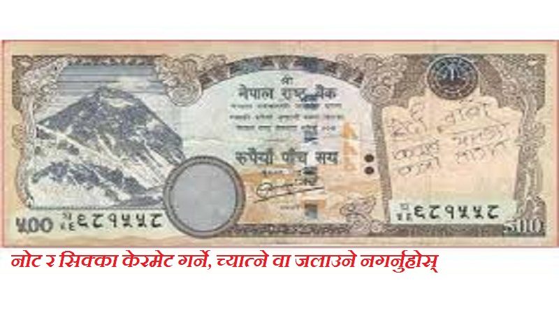 काठमाडौं- नेपाली नोट र सिक्का केरमेट गर्ने, च्यात्ने वा जलाउनेलाई अब प्रहरीले सिधै पक्राउ गरी ३ महिनासम्म जेल हाल्न र ५ हजार रुपैयाँसम्म जरिवाना गर्न सक्छ ।