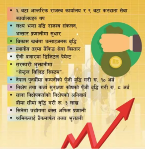 डुवान समस्याको दीर्घकालीन समाधान, जलमार्गको स्थलगत अध्ययन, लक्ष्यभन्दा बढी राजस्व संकलन, विकास खर्चमा वृद्धि लगायतको विषयलाई पनि उपलब्धीको रुपमा उल्लेख गरिएको छ ।