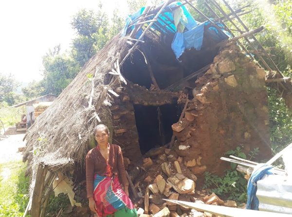 पतिको अंशमा आएको यही एउटा झुपडी र केही पाखो बारी छ। पति काठमाडौंमा भारी बोक्थे। आफूले सामान्य खेतीकिसानी र ज्यालामजदुरी गरेर चाजना सन्तान हुर्काउँदै थिइन् उनी। जेनतेन गुजारा चलिरहेको थियो। यत्तिकैमा २०७२ वैशाखको भुइँचालोले उनीहरुको सानो संसार नराम्ररी हल्लाइलियो।