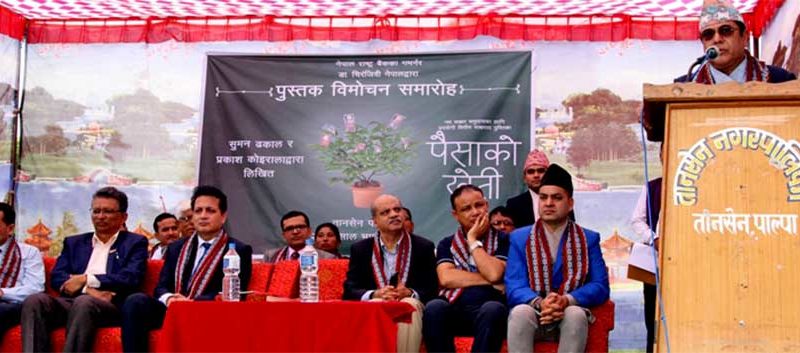 पाल्पाको तानसेनमा ‘पैसाको खेती’ नामक पुस्तकको विमोचन गर्दै गभर्नर डा. नेपालले स्वदेशी माटोमै स्वदेशी उत्पादन बढाउनुपर्नेमा जोड दिएका हुन् । गभर्नर नेपालले भने ‘हामी पैसा खोज्न विदेश भौतारिएका छौं, व्यापार व्यवसाय गर्न बाहिर गएका छौं तर आफ्नो ठाउँमा गर्न सकिने र संभावनालाई वेवास्ता गरेका छौ जसले गर्दा हामी आर्थिक विकासमा पछि पर्नु परेको छ ।’ अब देशमै केही गर्ने समय आएको छ । अवसर यहिँ छ, विदेश गएर दास बन्नुभन्दा स्वदेशी माटोमै उत्पादन बढाउन तिर लाग्न गभर्नर नेपालले आग्रह गरेका छन् । उनले नेपालमा उत्पादन घटिरहेकाले परनिर्भरता बढ्दै गएको बताए । देशले अहिले २८ अर्बको चामल, ११ अर्ब रुपैयाँको तरकारी, ८ अर्ब रुपैयाँको फलफूल र १५ अर्ब रुपैयाँको तेल आयात गर्ने गरेको गभर्नर नेपालले जानकारी दिए ।
