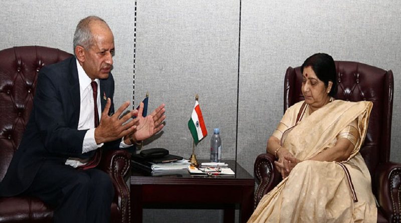 मन्त्री ज्ञवालीले भारतीय विदेश मन्त्रि सुषमा स्वराजसँग भेटवार्ता गरे