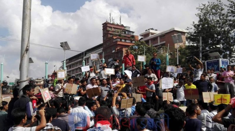 प्रधानमन्त्रीको निवासबाहिर नेविसंघको प्रदर्शन