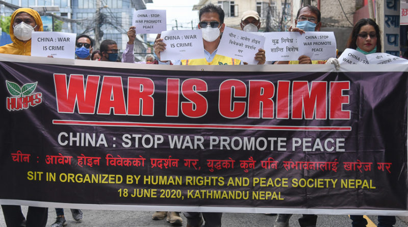 काठमाडौं । मानव अधिकार तथा शान्ति समाजले चीन–भारत सीमा क्षेत्र लद्दाखमा भिडन्त हुनु दुःखद भएको र यस्ता भिडन्त रोक्न माग गर्दै बिहीबार काठमाडौंस्थित दुई देशका दूतावास नजिकै धर्ना दिएको छ ।