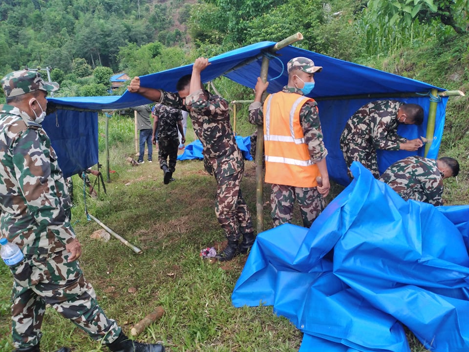 उपसभापति कुवँरले पहिरो पीडितहरुको सहजताका लागि त्रिपालले ठुलो मद्दत पुग्ने विश्वास व्यक्त गरे । त्यस अवशरमा नेपाली सेनाको सहयोगमा ११ घरधुरीलाई बस्न मिल्ने गरी अस्थायी टहराको व्यवस्थापन गरिएको छ ।