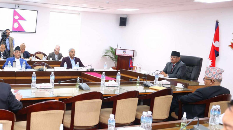प्रधानमन्त्री दाहालको चीन भ्रमणबारे सर्वदलीय वैठकमा छलफल, नयाँ नक्साबारे स्पष्ट कुरा राख्ने प्रमको प्रतिवद्धता
