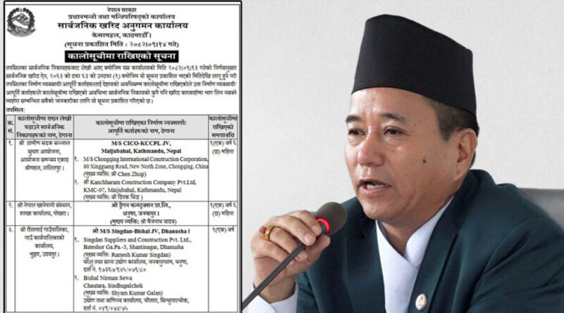 पुरा पढनुहोस Read moreकाठमाडौं । पूर्व ऊर्जा राज्यमन्त्री पूर्णबहादुर तामाङ (कान्छाराम)को स्वामित्वमा रहेको कान्छाराम कन्स्ट्रक्सन कालोसूचीमा परेको छ। प्रधानमन्त्री तथा मन्त्रिपरिषद् कार्यालय अन्तर्गतको…