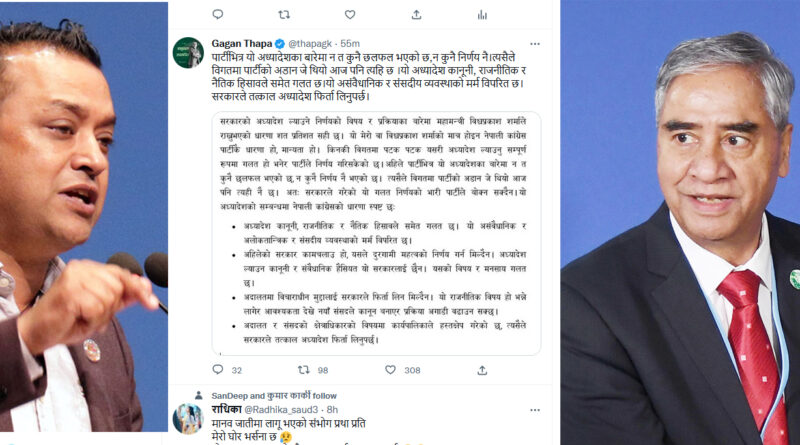 रेशमलाई छाड्न सरकारले ल्याएको अक्यादेशप्रति महामन्त्री थापाको आपत्ति